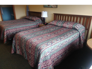 Two double beds, cable television, full bath, refrigerator, microwave, coffee maker, ironing board, WiFi, HBO, hair dryer and charging station.